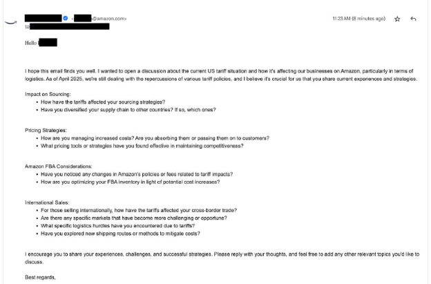 - 📩 内部问卷调研,了解关税政策是否影响卖家采购方式,以及未来的供应链布局策略。